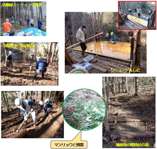 回廊下刈り、回廊作り、デッキ修繕、鎌研ぎ体験、定点カメラ点検