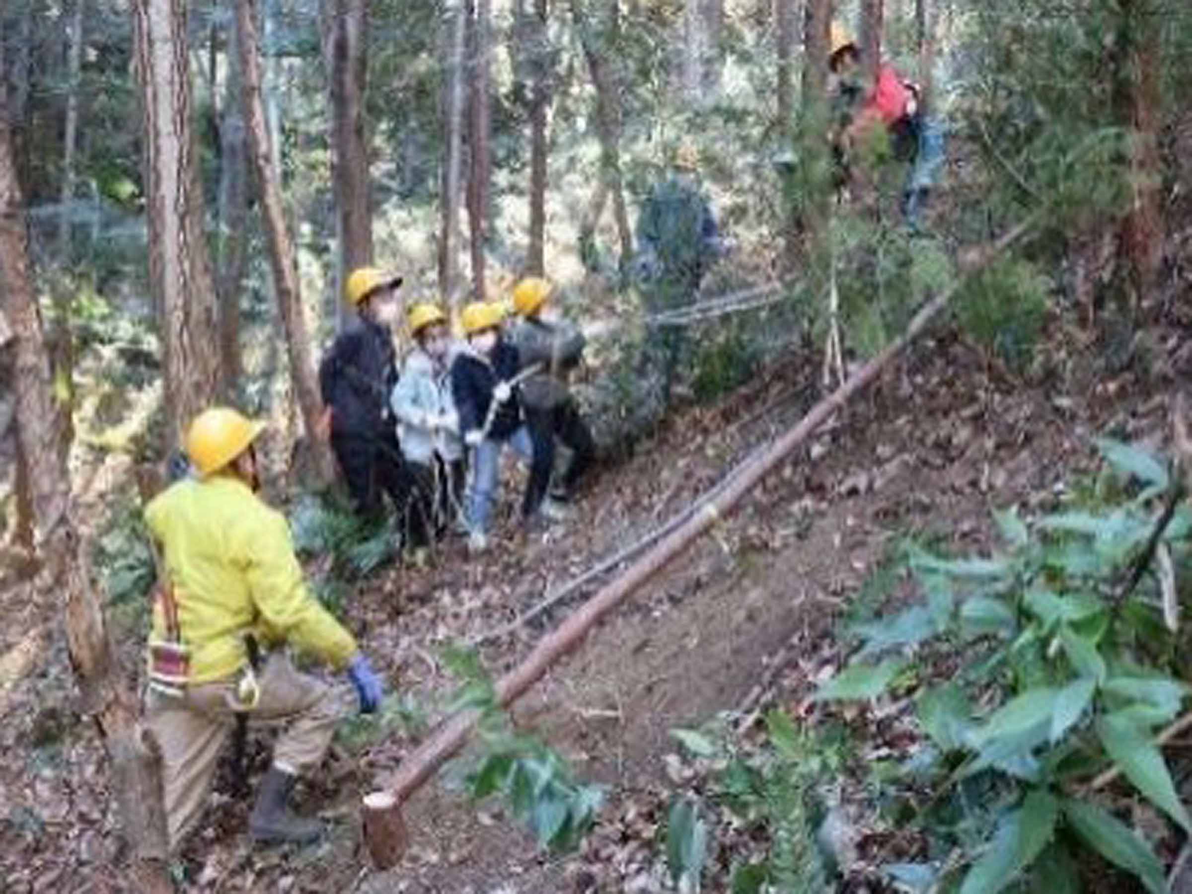 飯能市・ユガテの森で間伐体験とコースター作り