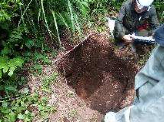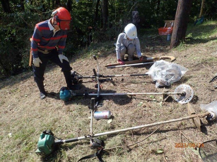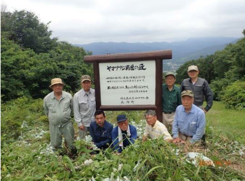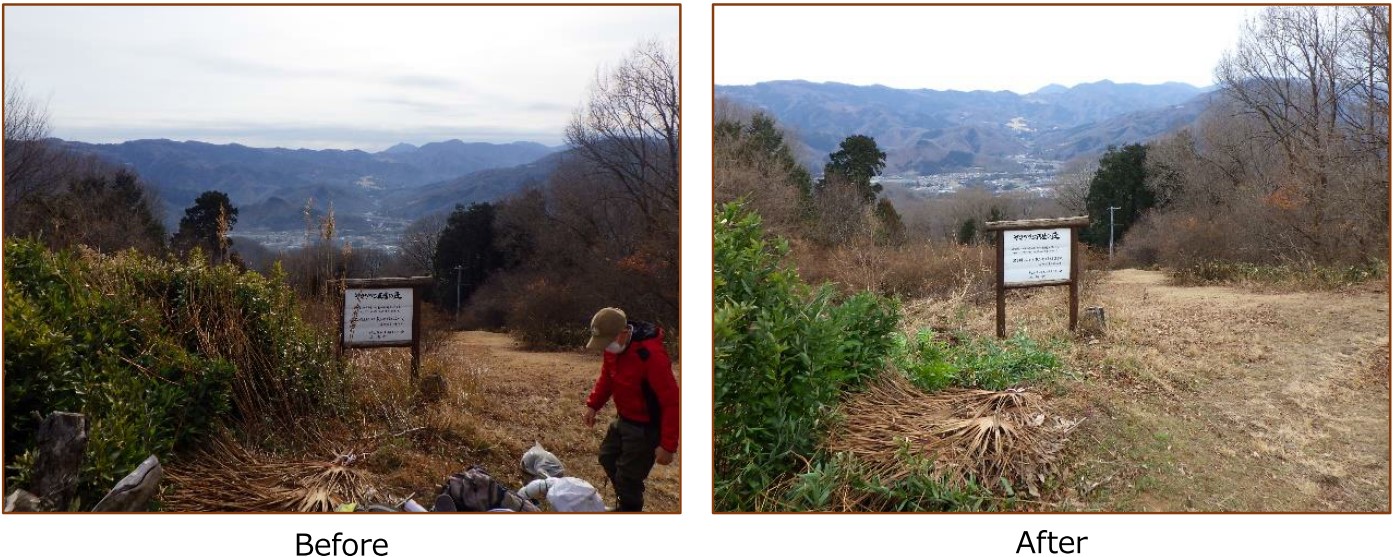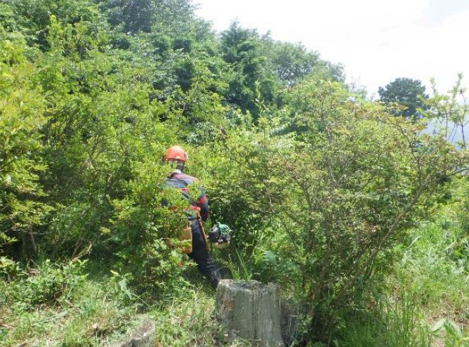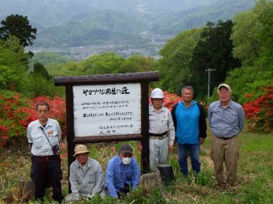 植栽終了から昨年5月で9年を経過し、現在でも年3回程度の下刈りを実施しています。植栽したヤマツツジは順調に生育中であり、往時の景観を見る日も近いのではないかと思われ、それを楽しみに、今後も作業を続けて行きます。 |