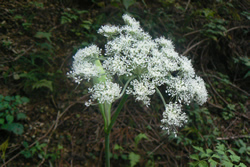 トチノキは複葉でホオノキは単葉であること、カエデ類ではイタヤカエデ、カジカエデ、イロハモミジ、コハウチワカエデ、ウリハダカエデ、メグスリノキなど、木の実ではコナラとミズナラ、クマシデとイヌシデなどを手のひらに載せてそれぞれの違いを観察しました。草本では、シロヨメナ、キバナアキギリ、ノハラアザミが主体で、アカタテハやヒョウモンチョウが吸密にいそしんでいました。イヌショウマ、オオバショウマ、サラシナショウマも咲いていて葉の違いをつぶさに観察することができました。林縁の薄暗がりで純白の強い光を放つシラネセンキュウを観察したときは、小さな花が300個以上も集まっていることや葉柄が軸ではなく鞘状になっていることに参加者自らが気づき、新しい発見の喜びを感じているようでした。とかく同定が厄介なセリ科の植物にはあまり首を突っ込みたがらず避けてしまいがちですが、積極的に観察しなくてはいけないことを痛感したしだいです。