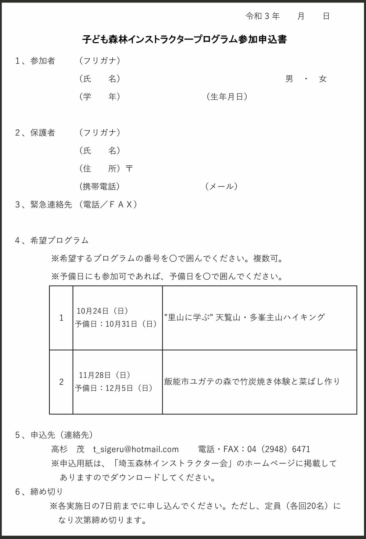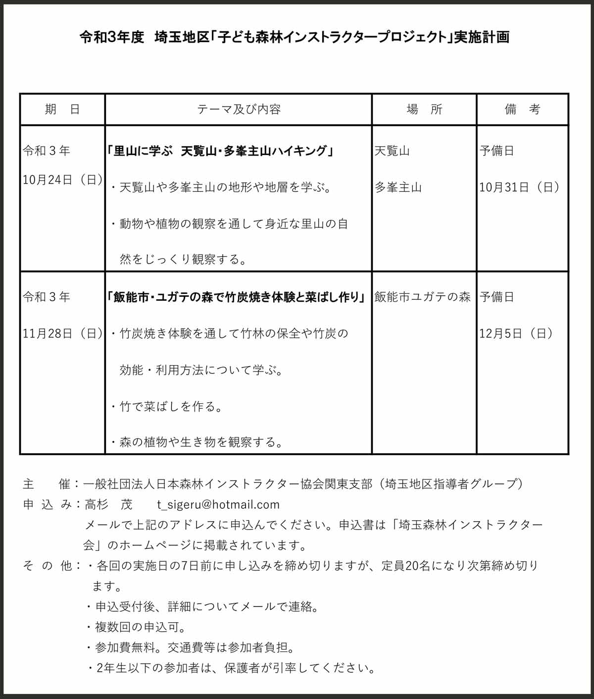 令和3年度埼玉地区「子ども森林インストラクタープロジェクト」実施計画