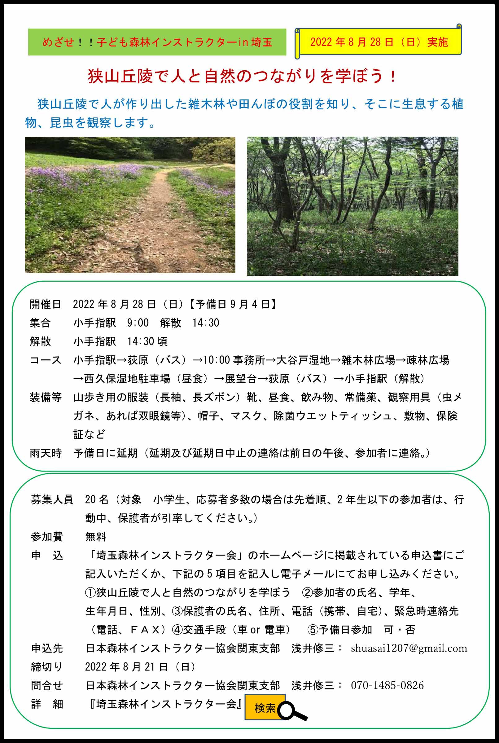 ①8月28日(日)狭山丘陵で人と自然のつながりを学ぼう!