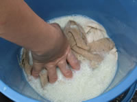 ・豆乳200ccを水600ccで薄め布を30分浸す。