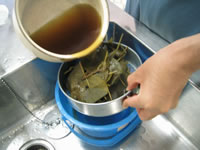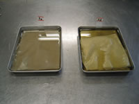 ・Fe溶液をお湯に溶かす。写真左(濃度25%)