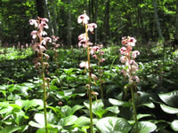 アズマシャクナゲ…ツツジ科ツツジ属 標高800~2000mの明るい林内や林縁、尾根などに生える。根は細く地表近くに張るので乾燥に弱いが冬季に積雪に耐える。葉はホンシャクナゲより小さい。