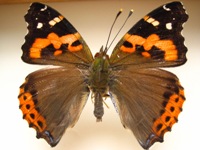 旧大宮市の北方、見沼たんぼでの観察会のおり、見沼代用水の流れに沿って歩いていると、岸のカラムシについているアカタテハの幼虫が、盛んに頭を振っている。あまりに頭を振るのが面白く、しばらく見とれていた。チョウの幼虫と親とは、姿形がかけ離れているので、幼虫から親の姿を想像するのはむづかしいが、アカタテハは分かる。アカタテハの幼虫の腹部の模様は、親の後翅の亜外縁にある模様とよく似ている。アカタテハの食草は、イラクサ科のイラクサ、ヤブマオ、カラムシなどである。