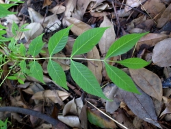香椿と書きますが椿の仲間ではありません。全体に香りがあり、薬効(胃腸薬)もあるとのことです。針葉樹のように直立した幹が印象的でした。葉は羽状複葉。